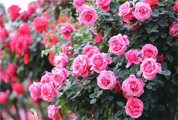 小沙壩月季莊園于2022年被列為瀘水市十大莊園。初夏時(shí)節(jié),沿著寬敞的水泥路走進(jìn)小沙壩月季莊園,只見百畝月季花正競相綻放,紅的像火,白的像雪,粉的如霞,姹紫嫣紅的花兒在風(fēng)中翩翩起舞。月季花容秀美,姿色多樣,四時(shí)常開,深受人們的喜愛。